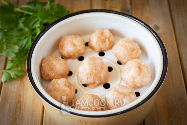 Увлажненными руками начнем лепить котлетки-заготовки, которые тут же будем выкладывать на решетку для варки на пару в мультиварке. В чашу зальем 1-1,5 литра воды и установим заполненную решетку с заготовками котлет, затем всё это загрузим в саму мультиварку.