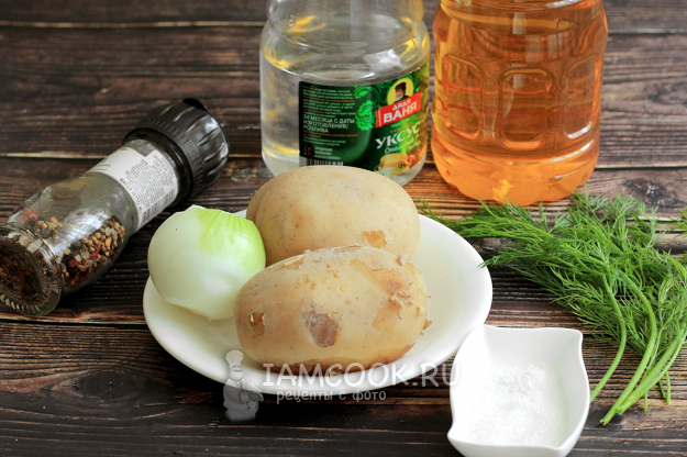 Для приготовления салата "Холостяк" соберите необходимые продукты по списку. Картофель отварите в кожуре и остудите.