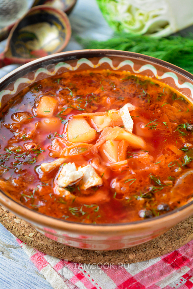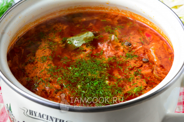 Такое блюдо очень ароматное, сытное и вкусное. К борщу не забудьте предложить сметану.