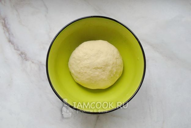 Замесите мягкое, эластичное тесто. Выложите его в миску, накройте пленкой или полотенцем и поставьте в теплое место.