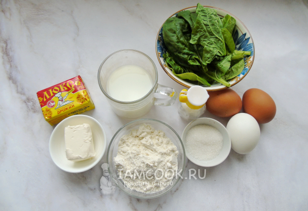 Соберите все ингредиенты для приготовления пирожков со шпинатом и яйцами.