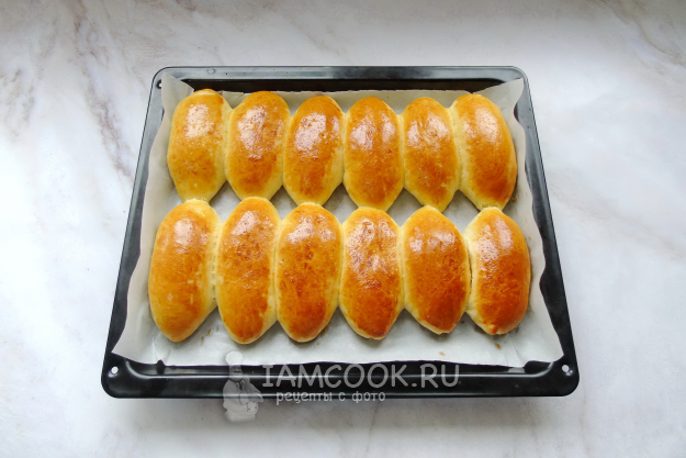 Выпекайте пирожки в духовке, разогретой до 180 градусов, 30-35 минут. Время выпекания зависит от вашей духовки.
