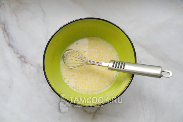 Перемешайте молоко, дрожжи, сахар, соль, яйцо и сливочное масло.