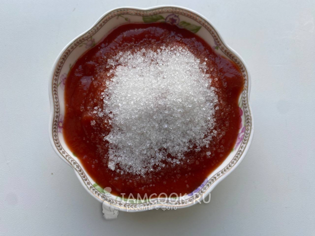 К томатной пасте добавьте сахар (чтобы убрать кислинку).
