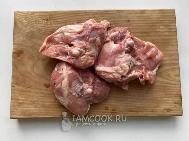 Я использовала куриные бедра. Отделяем мясо от кости.