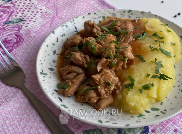 Подавайте с любой крупой. Благодаря соусу ваше блюдо точно не будет сухим. Не забудьте украсить зеленью.
