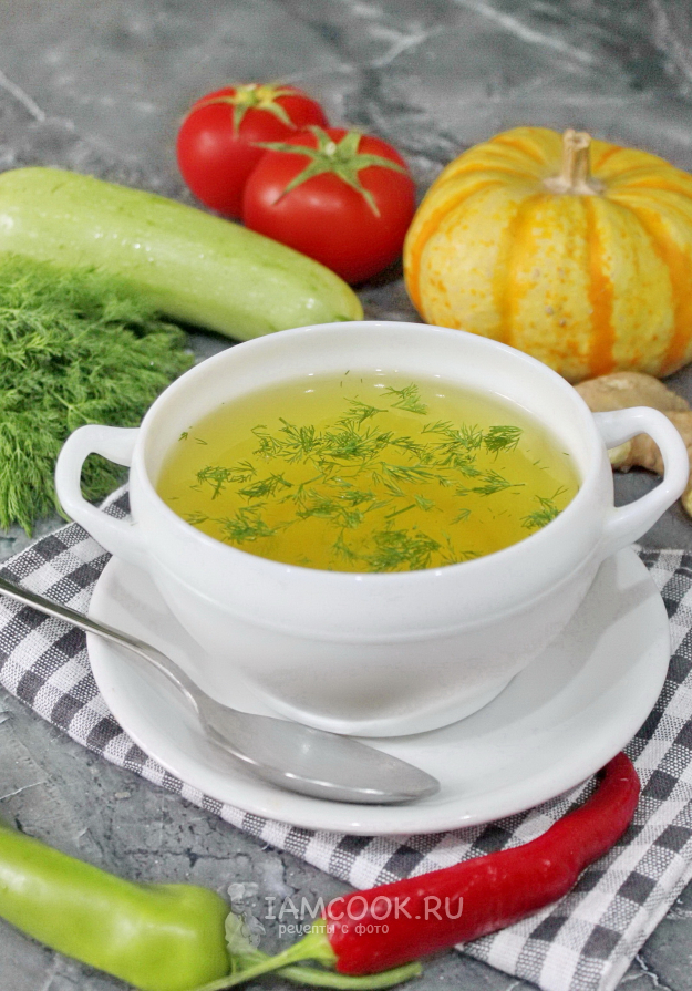 Доведите до кипения, после сделайте огонь минимальным. Варите овощной бульон 35-40 минут. Затем выключите плиту и дайте бульону настояться, пока он не остынет.