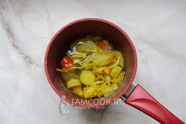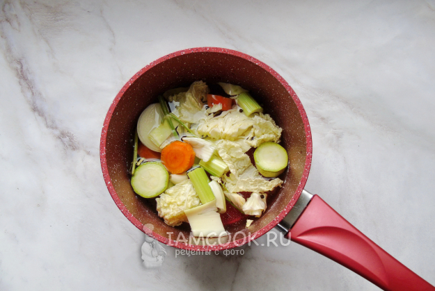 Выложите в кастрюлю все овощи.