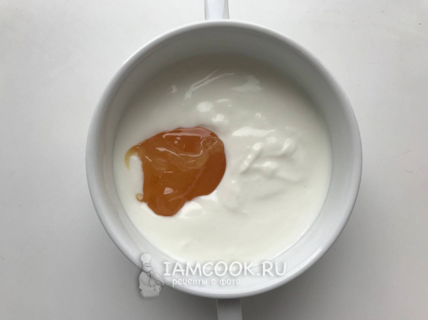 Для крема смешиваем натуральный йогурт с медом.