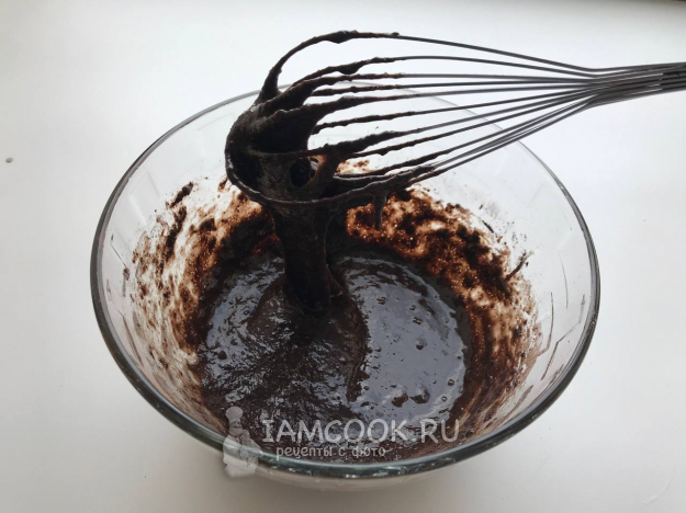 Хорошо вымешиваем венчиком либо взбиваем миксером. Получается жидковатое тесто.