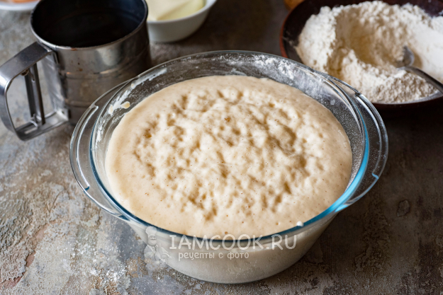Готовая опара увеличилась в объеме и приобрела пористую, пузырчатую структуру.