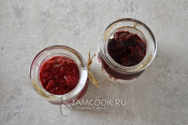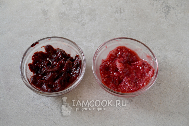Размороженные ягоды пюрируйте. Если ягод много - их можно пюрировать блендером, а если мало, как у меня, просто разомните вилкой.