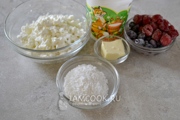Творог получился чуть сладкий за счет кокосовой стружки, кисло-сладкие ягоды хорошо с ним сочетаются по вкусу. Приятного аппетита!