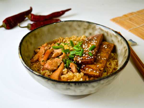 Пока креветки жарятся, очистите имбирь и зубчики чеснока. Промойте и мелко нарежьте, добавьте с сахаром, красным перцем в сковороду. Влейте соевый соус, лимонный сок и рисовый уксус. Аккуратно перемешайте.