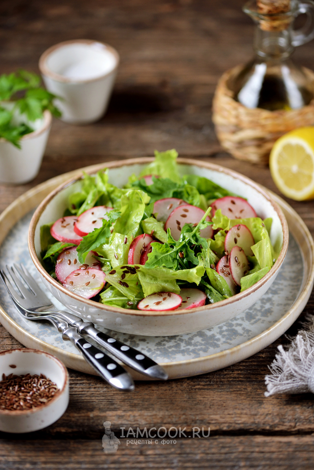 Сочный и полезный салат из редиса с рукколой готов! Отличное дополнение к любому мясу, особенно приготовленному на мангале.