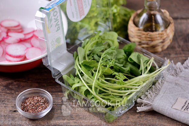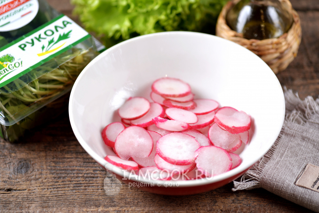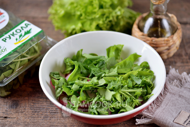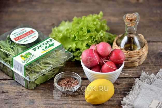 Все продукты для приготовления салата с рукколой и редисом - перед вами.