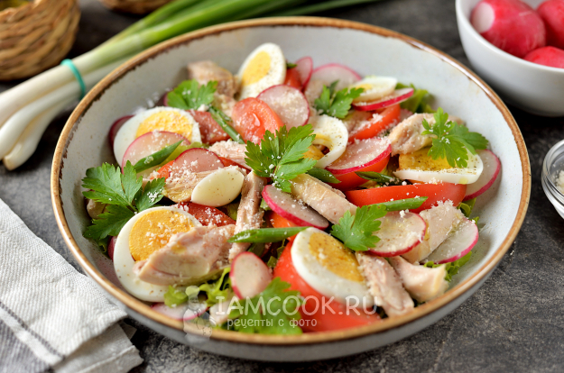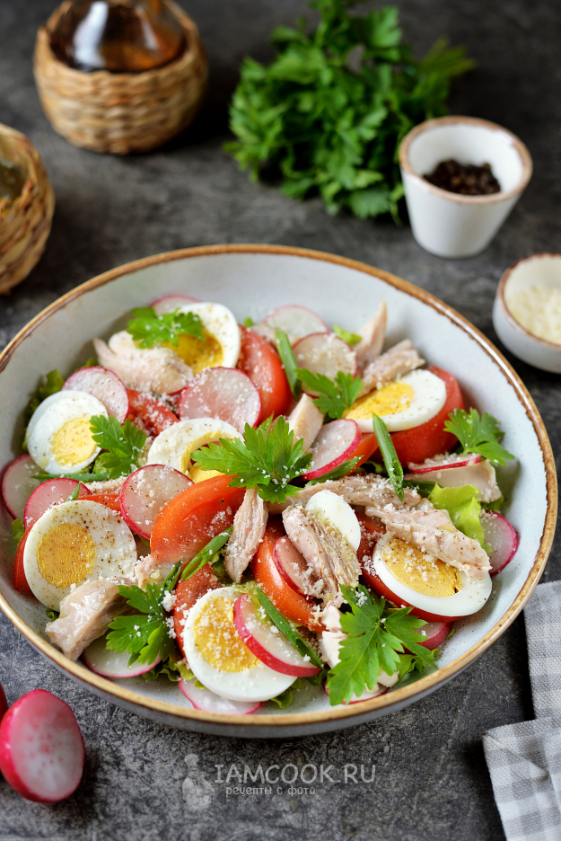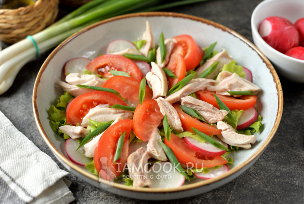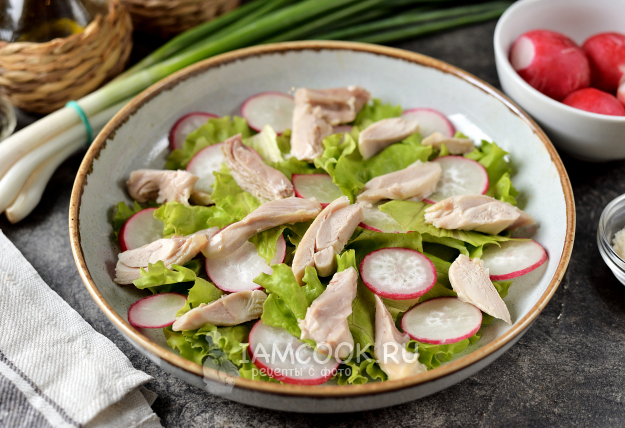 Легкий, вкусный и малокалорийный салат с курицей и редиской готов!