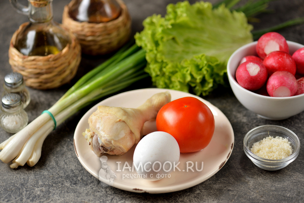 Для приготовления салата с курицей и редиской вам понадобятся все продукты, что на фото.