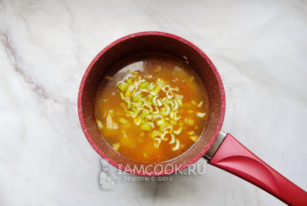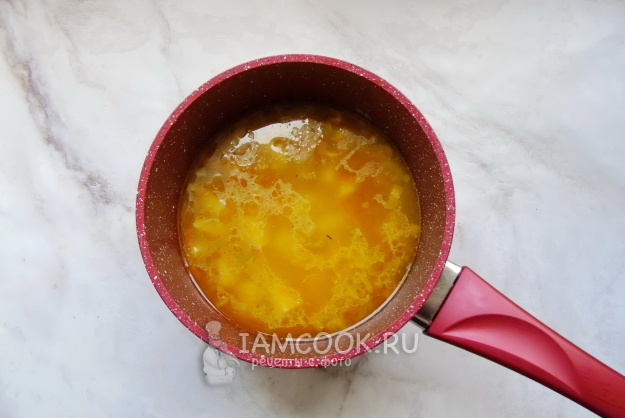 Приготовленным бульоном залейте морковь и лук. Картофель нарежьте кубиками и выложите в кастрюлю.