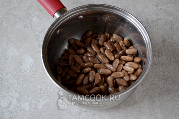 Утром слейте воду с фасоли, залейте чистой и сварите на тихом огне в течение 1 часа до мягкости. Отвар с готовой фасоли слейте.