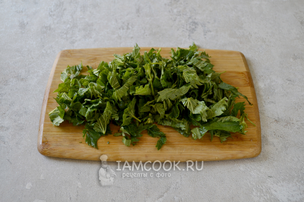 Оборвите с крапивы листочки. Тщательно промойте, отряхните от воды и нарежьте.