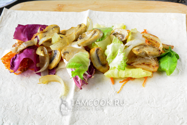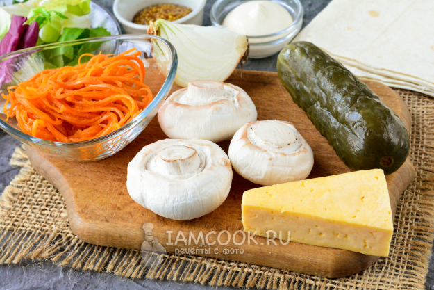 Соберите все необходимые продукты для приготовления шаурмы с грибами.