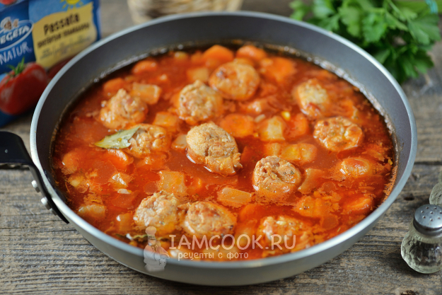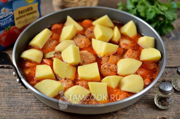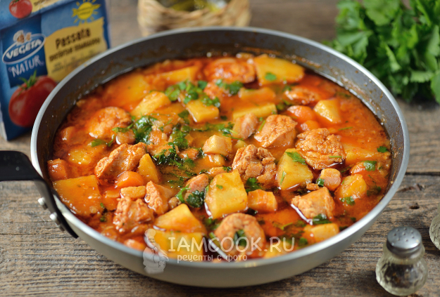 Томатное пюре можно заменить на консервированные помидоры в собственном соку.