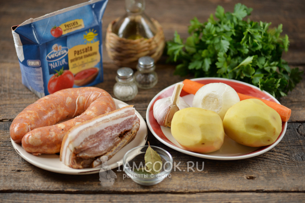 Заранее подготовьте все ингредиенты по списку для французского рагу. Картофель, лук, чеснок и морковь почистите, помойте все под проточной водой вместе со свежей зеленью.