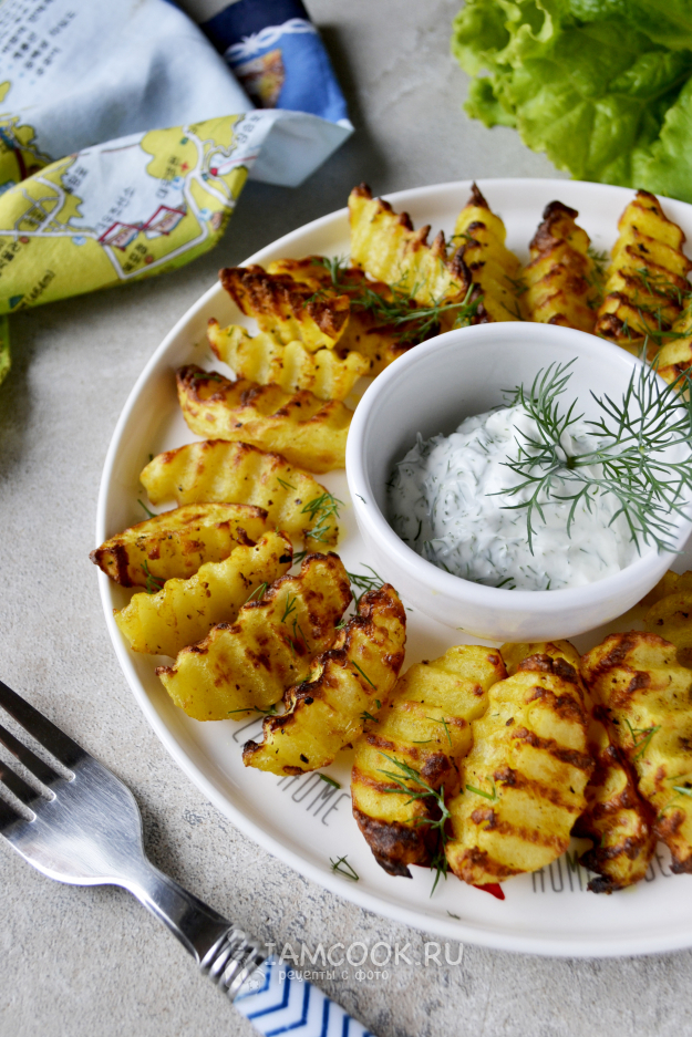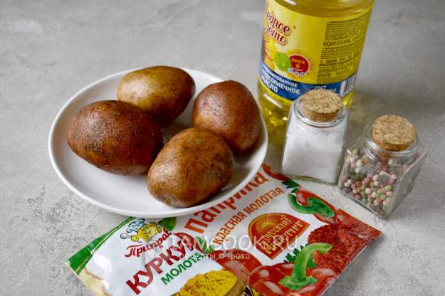 Соберите продукты для приготовления картошки по-деревенски в аэрогриле. Специи возьмите по своему вкусу.