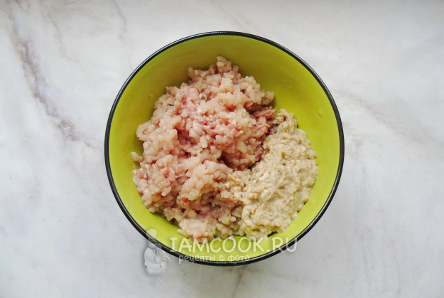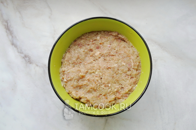 Фарш посолите, поперчите и тщательно перемешайте до однородной консистенции.