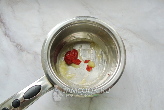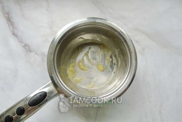 Приготовьте подливу. В сковороду или кастрюлю с толстым дном выложите сливочное масло и муку. Подогрейте и хорошо перемешайте, чтобы не было комочков.