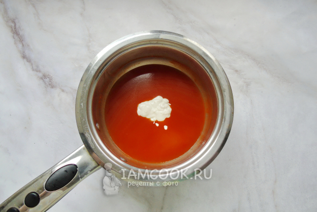При постоянном помешивании варите подливу 2-3 минуты до загустения. После добавьте сметану.