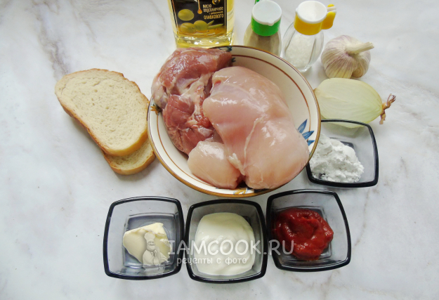 Соберите ингредиенты для приготовления котлет в подливе как в столовой.