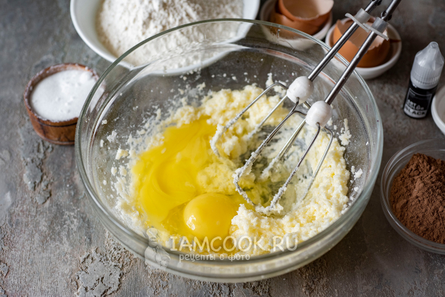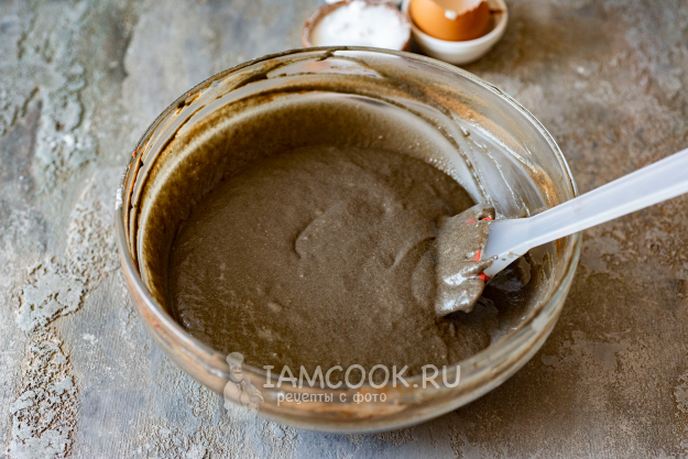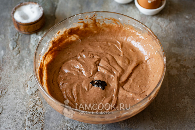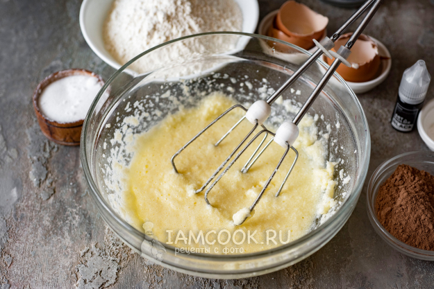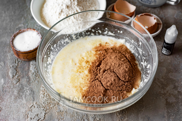 Перемешаем все до получения вязкого шоколадного теста. Чтобы придать тесту черный оттенок, добавим несколько капель пищевого красителя.