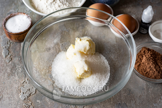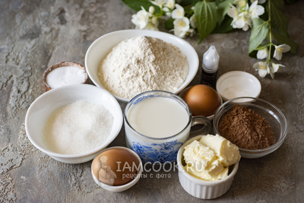 Соберём необходимые ингредиенты для приготовления черных капкейков с черным кремом.