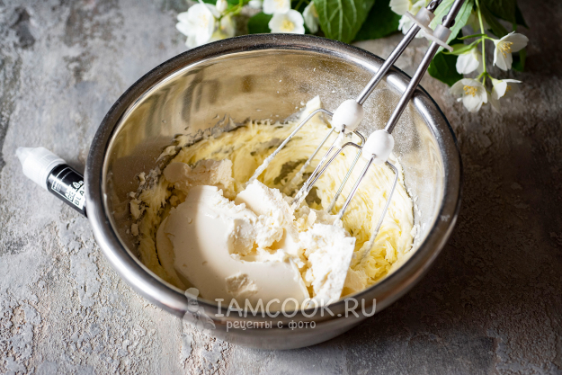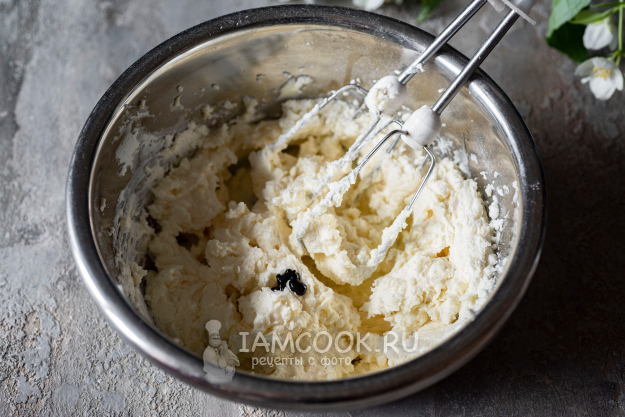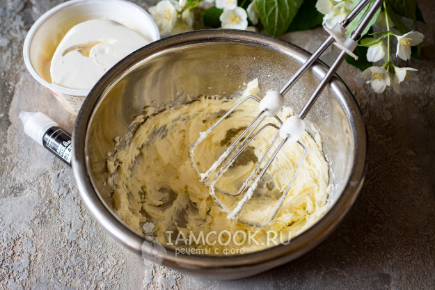 Эти ингредиенты будем взбивать миксером до получения кремообразной массы.