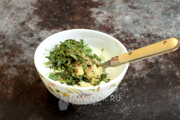Добавьте в сметану соль и прочие составляющие, перемешайте и соус готов.