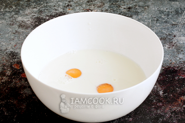 В теплом молоке растворите соль и добавьте яйца. Взболтайте до однородности.
