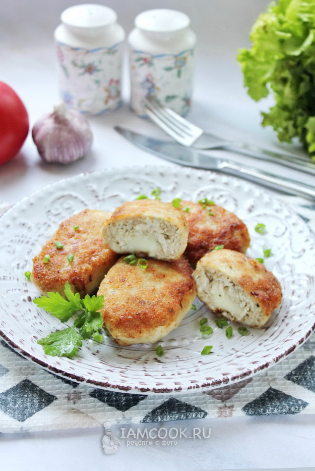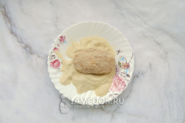 Фаршу с сыром придайте форму котлеты и обваляйте её в панировочных сухарях.