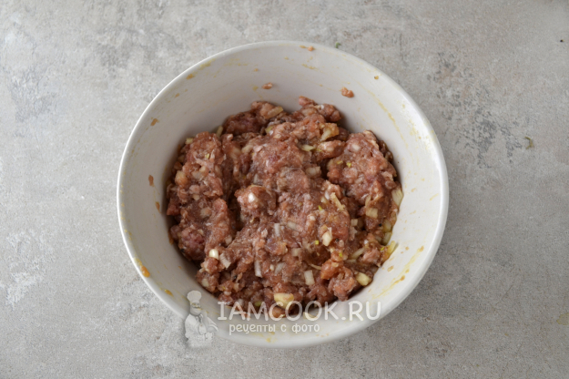 Тщательно перемешайте фарш.