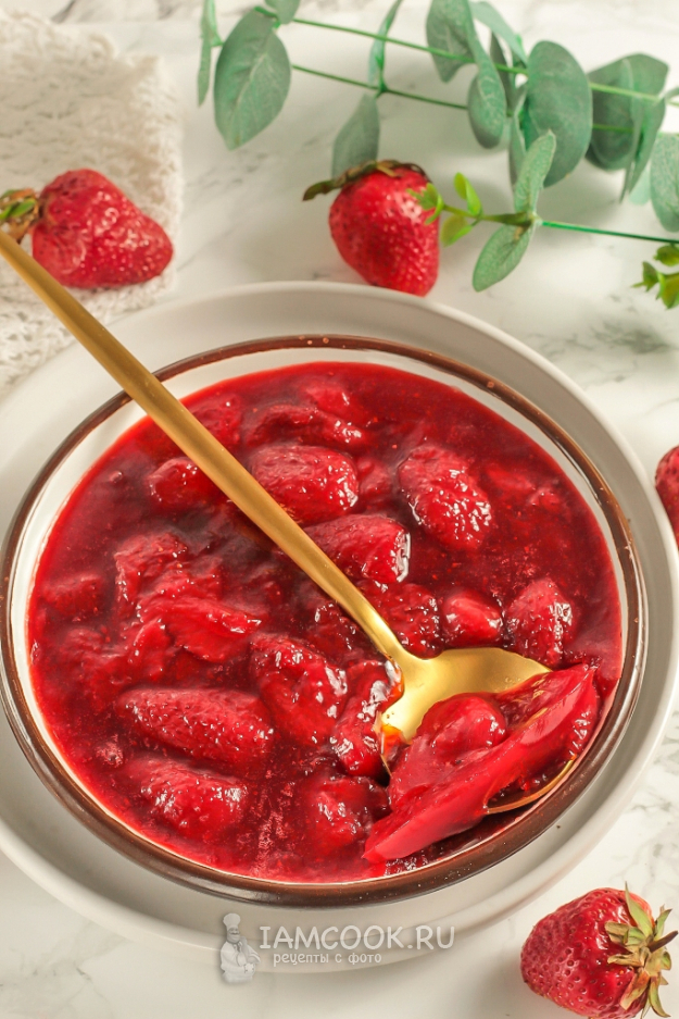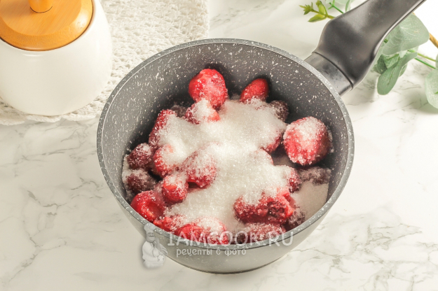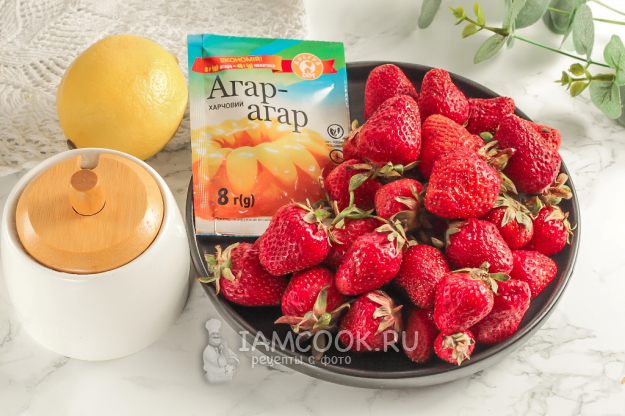 Продукты для приготовления клубничного конфитюра для торта - перед вами!