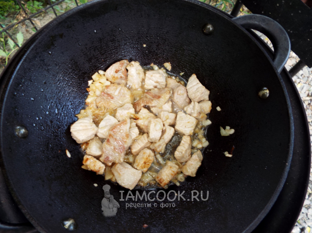 Выложить в казан лук.