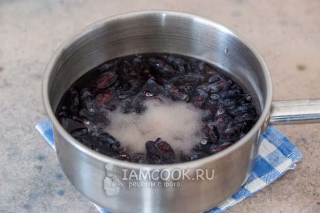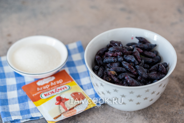 Соберите указанные ингредиенты для приготовления желе из жимолости на зиму с агар-агаром. Если жимолость очень кислая, то сахара можете взять чуть больше.