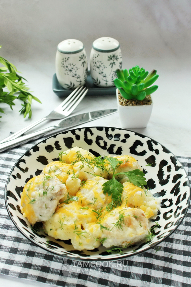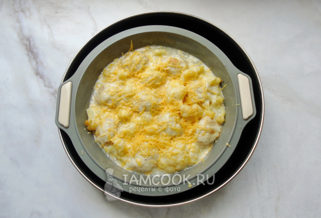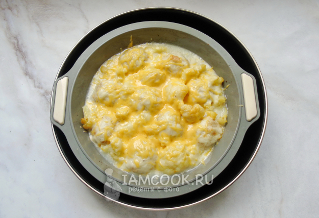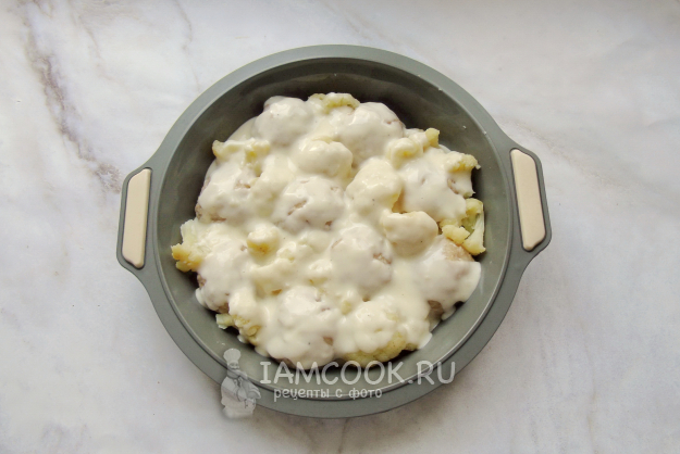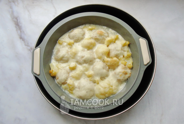 Сырным соусом залейте тефтели с цветной капустой.