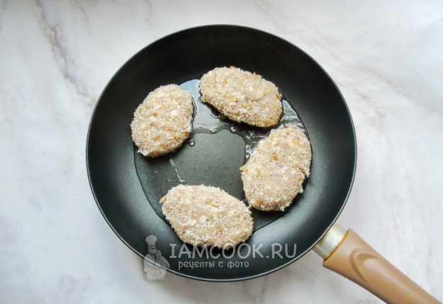Выложите котлеты на горячую сковороду с подсолнечным маслом.