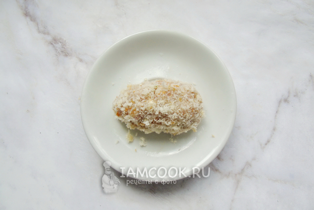 Сформируйте котлету и обваляйте её в панировочных сухарях или хлебных крошках.