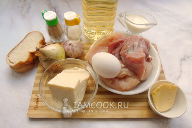 Соберите ингредиенты для приготовления котлет с адыгейским сыром.