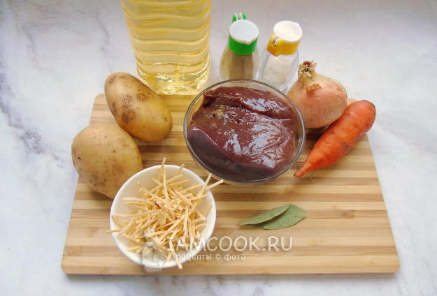 Соберите ингредиенты для приготовления печеночного супа с говяжьей печенью.
