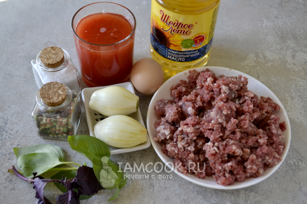 Продукты для приготовления фрикаделек в томатном соусе в мультиварке соберите по списку.