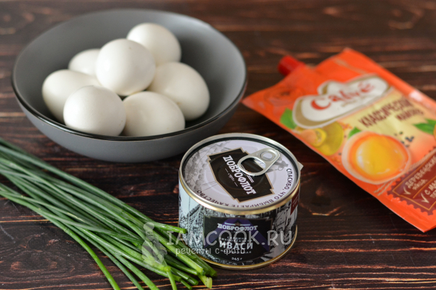 Чтобы приготовить яйца, фаршированные рыбными консервами, вам потребуются сами яйца, любые рыбные консервы в масле или собственном соку и майонез. Чаще всего раньше такие яйца готовили с консервированной сайрой. Но отлично подойдёт и скумбрия, и сардина, и иваси. А уж с консервированной горбушей будет просто деликатес - еще и по цвету красиво!